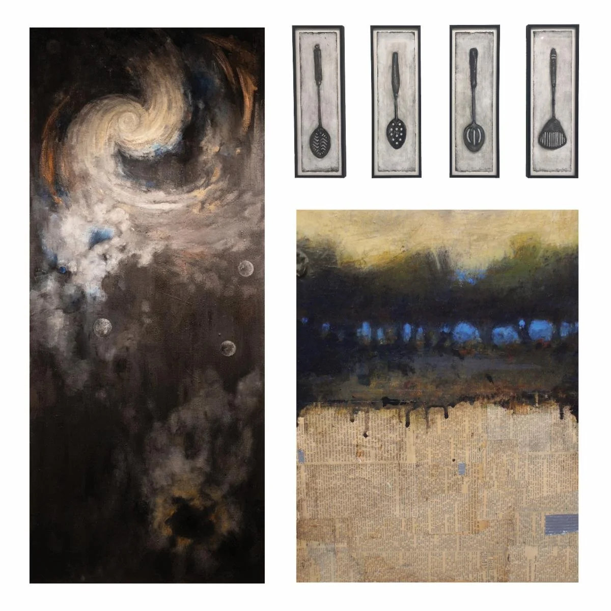 On the surface, there is little to connect the work of Alison Hildreth, Lissa Hunter, and Tom Hall aside from their friendship. Hildreth often works in abstraction, suggesting concrete forms yet remaining diaphanous. Hunter almost works in the reverse, focusing on everyday objects - spoons, bowls, brushes - that she transforms into the extraordinary. In the storied tradition of Maine art, Hall paints landscapes, wonderfully dramatic and unexpected even when depicting well known Maine locales.