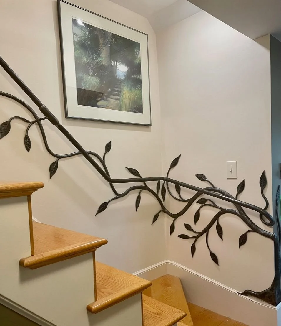 Sometimes you get lucky. I met a blacksmith named Don Asbee through Jo Stealey, a dear friend and fine artist in Columbia, Missouri. One thing led to another and here we have the most extraordinary railing imaginable on our stairway. For me, besides getting to live with it every day, the joy was in designing it and having someone with skills far beyond anything I could imagine make the idea come to life. Thank you, Don.